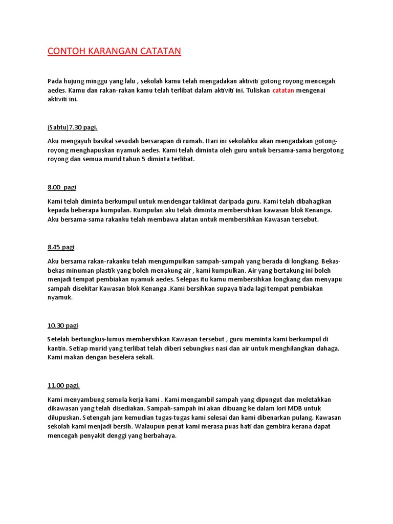 Contoh Karangan Catatan Harian Pdf